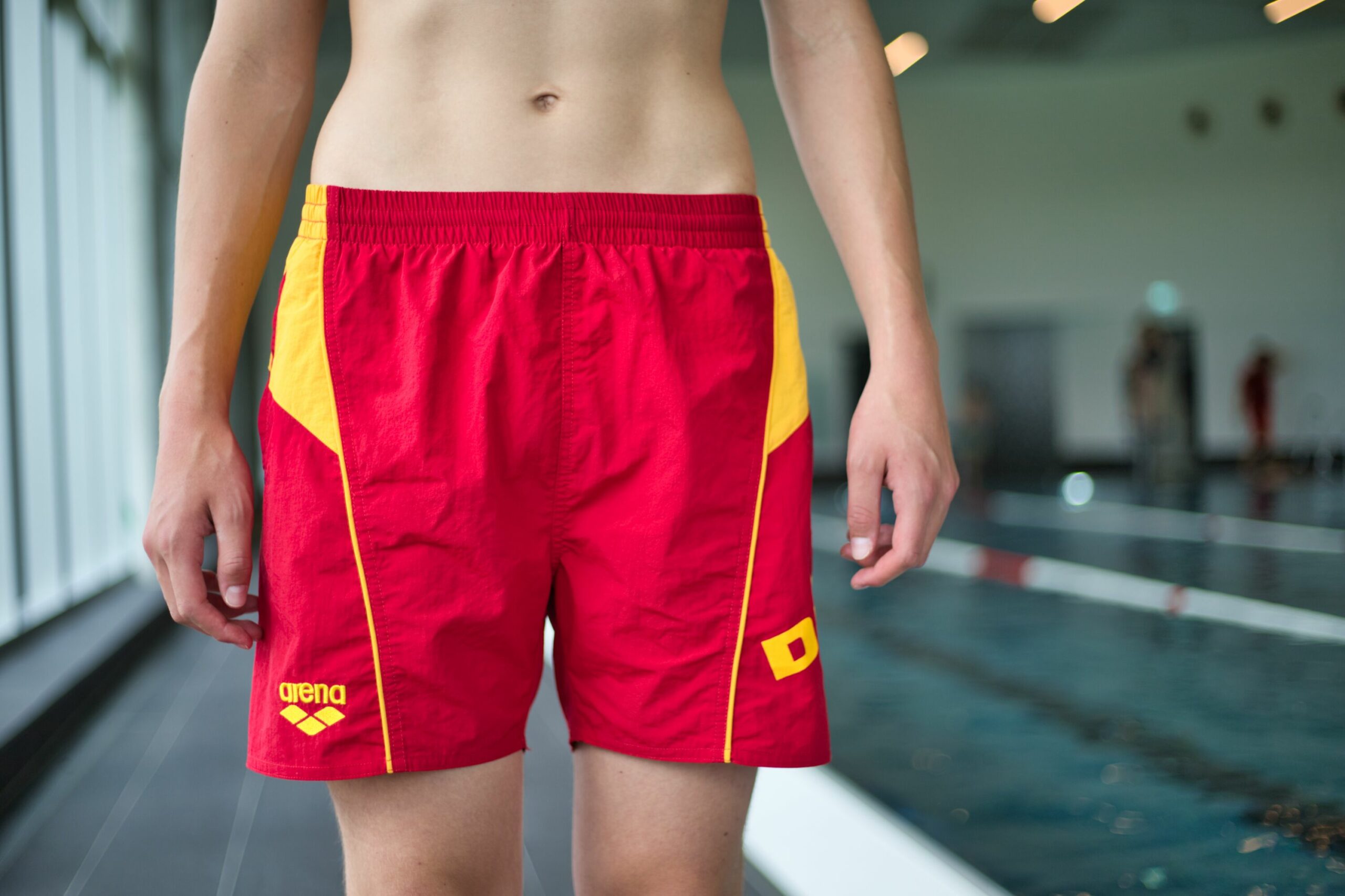 Bermudashorts für Herren im DLRG Design. Jetzt mit kürzerer Beinlänge im Vergleich zum vorherigen Modell. Der eingearbeitete Innenslip bietet dir Komfort und Sicherheit beim Schwimmen. Gelber DLRG Wortmarkendruck auf dem linken Bein. Das Material ist unempfindlich, trocknet sehr schnell und bietet optimalen Tragekomfort. Ausgestattet sind die Shorts mit 2 Seitentaschen und verstellbarem Kordelzug im Bund.